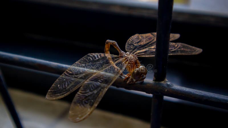 Dragonfly maro deasupra cadrului ferestrei